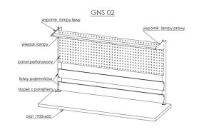 - posiada zawieszany za pomocą zaczepów wieszak, umożliwiający instalację dowolnego oświetlenia np. taśmą led,