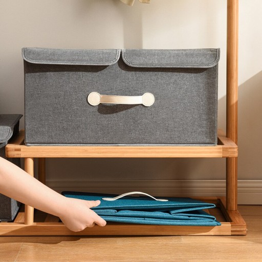 Pudło do przechowywania Rena jest składane i bardzo łatwe w montażu. Możesz postawić je na półce regału, komodzie, w szafie lub na dywanie stawiając jedno na drugim.