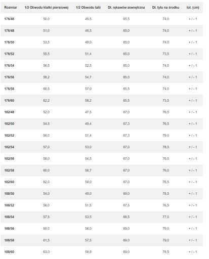 - Rozmiar marynarki: 56/182