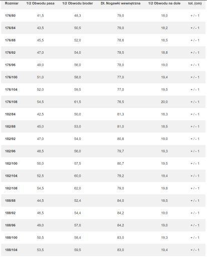 - Rozmiar spodni: 100/182
