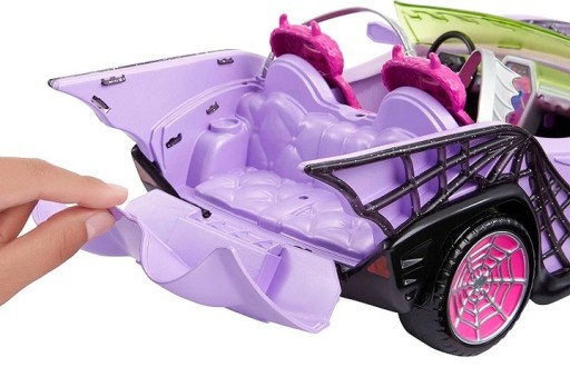 Dziewczyny ze szkoły Monster High uwielbiają wspólne podróże i często organizują wypady za miasto. Pojazd Ghoul Mobile zaprojektowany został w taki sposób, by dzieci mogły odgrywać scenki z najnowszego serialu – auto ma fioletową karoserię i posiada body kit w kształcie czarnej, pajęczej siedzi, jaka dodaje mu iście upiornego charakteru. Autko ma formę kabrioletu z dwoma siedzeniami wyposażonymi w pasy bezpieczeństwa – gabaryty pojazdu sprawiają, że zmieszczą się tutaj dwie lalki z tej samej serii. Ciekawym udogodnieniem jest ruchoma klapa bagażnika, której opuszczenie ukazuje wygodną kanapę – idealną podczas pikników czy kempingu!