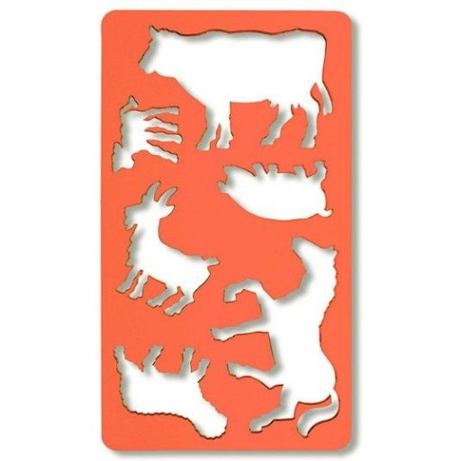 Szablon dla dzieci wykonany z kolorowego, transparentnego tworzywa sztucznego.