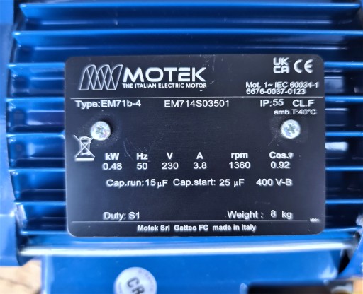 - Napęd: silnik 0,48 kW 1360 obr/min
