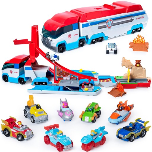 - Zawartość zestawu: patrolowiec + 9 samochodów z figurkami bohaterów Psiego Patrolu