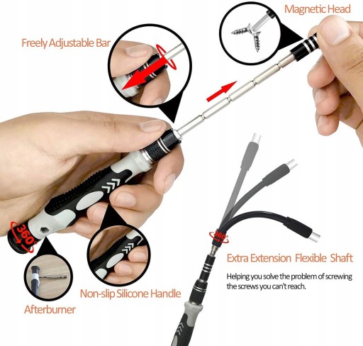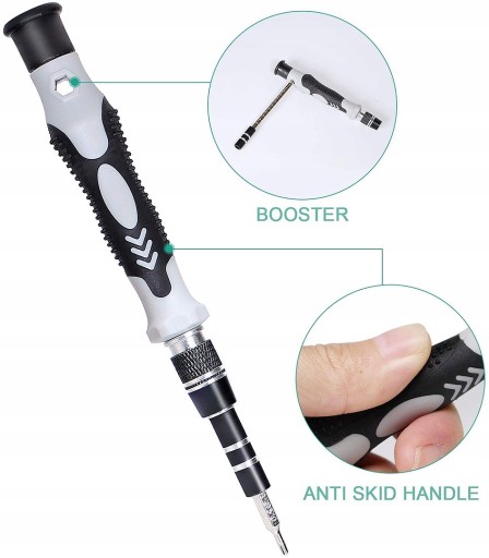 - 98 magnetycznych precyzyjnych bitów wykonanych z wysokiej jakości stali chromowo-wanadowej CR-V S2, charakteryzującej się wytrzymałością oraz sprężystością umożliwia rozkręcenie niemal każdego urządzenia