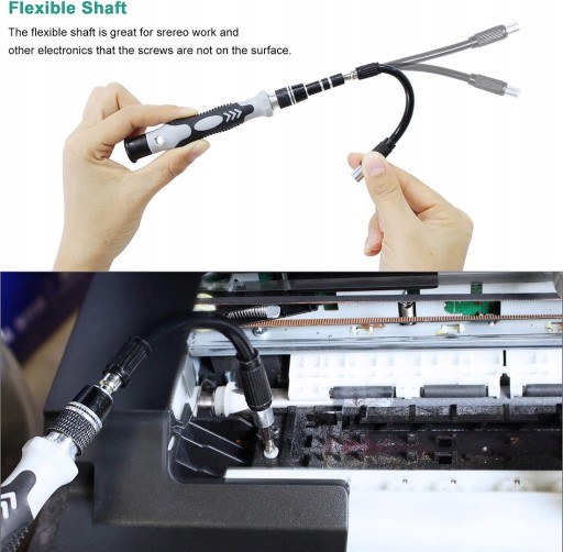 Regulowana oraz dodatkowa elastyczna przedłużka do bitów ułatwi wymianę części w bardzo trudno dostępnych miejscach.