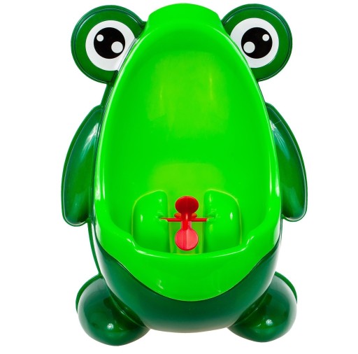 Pisuar, nocnik dla dziecka w kształcie żaby. Idealny produkt do nauki sikania w pozycji stojącej, bez konieczności stosowania specjalnych podestów do sedesu. Zapewni dziecku mnóstwo frajdy i nauczy go celowania w sam środek podczas załatwiania potrzeb fizjologicznych. Zamontowany wewnętrzny „kołowrotek” zapewnia dużo frajdy chłopcom a ich „celność” gwarantuje suchą powierzchnię dokoła pisuaru.