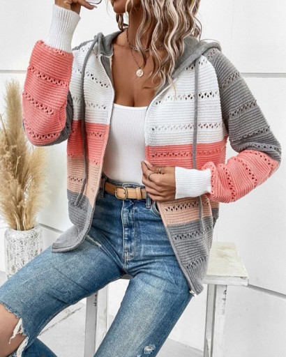 MODNY SWETER KARDIGAN NARZUTKA ZAMEK KAPTUR