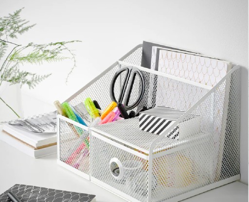 Product detailsPomoże utrzymać wszystko w sposób zorganizowany, od długopisów i materiałów biurowych, po pendrive'y i ładowarki.Produkt można używać w całym domu, nawet w pomieszczeniach o dużej wilgotności, takich jak łazienka. Dołączono 4 miękkie plastikowe nóżki.DesignerIKEA of SwedenSzerokość: 25 cmGłębokość: 20 cmWysokość: 20 cmEnvironmentMaterials & careCzęść główna: stal, Powłoka proszkowaochrona przed rysami: 100 % poliesterWycieraj do czysta miękką szmatką zamoczoną w wodzie i łagodnym środku do mycia lub w mydle, jeśli trzeba.Wycierać czystą, suchą szmatką.