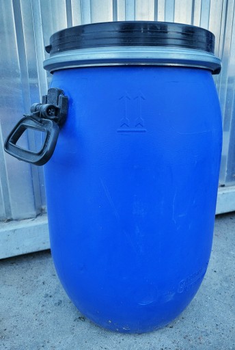 Beczka plastikowa z deklem, klamrą i uchwytami - 30 litrów po jednokrotnym użyciu