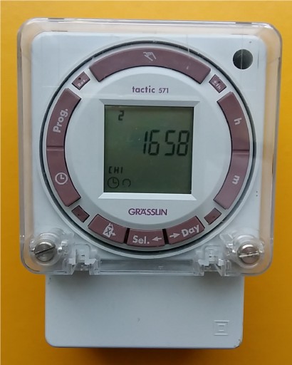 Niemiecki sterownik czasowy używany GRASSLIN TICTAC 571 --- 1-kanałowy 230V 10A