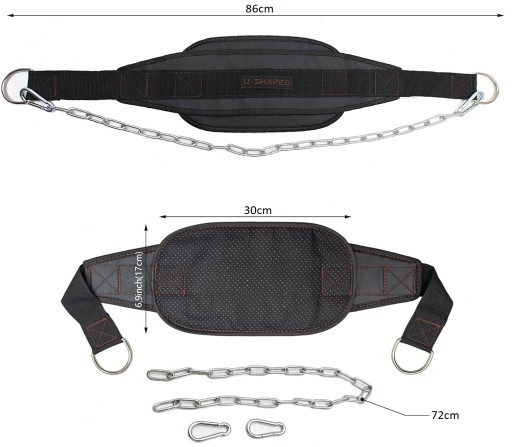 Stalowy łańcuch, który jest przymocowany do pasa, pozwala na zawieszenie obciążników. Umożliwia to szybką i łatwą regulację jego ciężaru. Krótkie ogniwa sprawiają, że układa się bezproblemowo po każdym promieniu krzywizny.