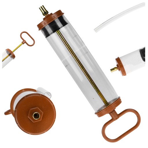 - Wygodna duża rączka: Ergonomiczna rączka zapewnia wygodny i pewny chwyt, co pozwala na precyzyjne kontrolowanie procesu odsysania i wstrzykiwania oleju.