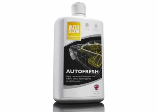 AutoGlym AUTOFRESH to mocny koncentrat zapachu do samochodu, który można mieszać z wodą i rozpylać na tapicerkę materiałową i/lub dywaniki.