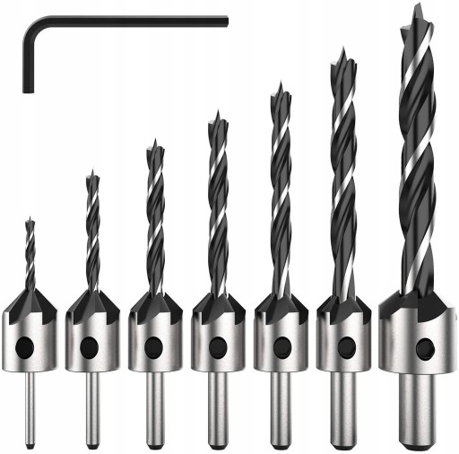 Odkryj wszechstronność i precyzję dzięki zestawowi 7 wierteł do drewna z pogłębiaczem i fazownikiem, zaprojektowane z myślą o spełnieniu wszystkich Twoich wymagań dotyczących wiercenia i montażu. Ten niezastąpiony zestaw narzędziowy to klucz do realizacji projektów z drewna, tworzyw sztucznych i płyty MDF, zapewniając czyste i precyzyjne wykonanie otworów z możliwością ukrycia wkrętów lub kołków dla estetycznego wykończenia.