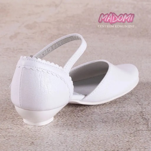 Klasyczne białe pantofelki Polskiego Producenta obuwia firmy MIKO na małym obcasiku, o którym marzy każda dziewczynka.