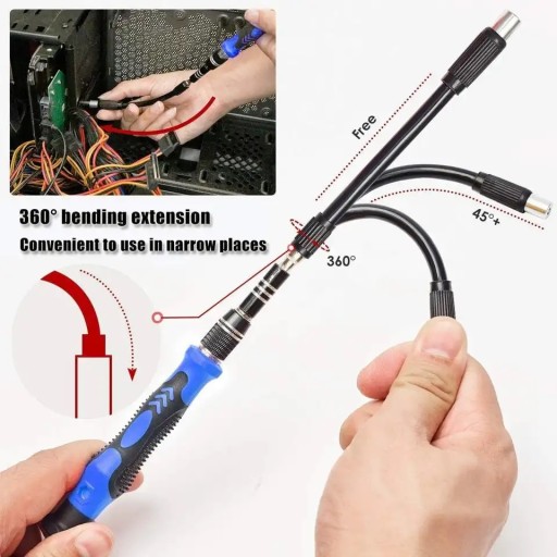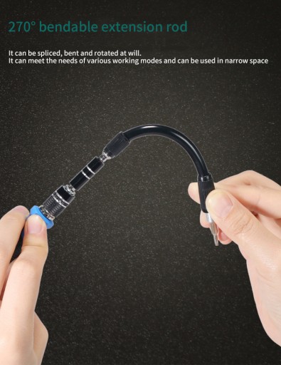- Przedłużka gumowa, giętka, obrotowa - pozwoli Ci uzyskać dostęp do wkrętów w trudno dostępnych miejscach