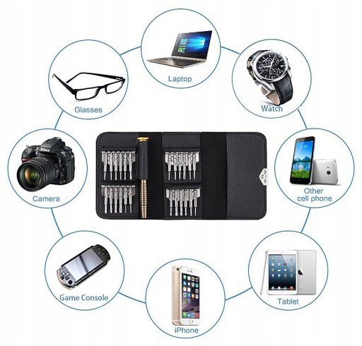Zestaw serwisowy znajdzie szerokie zastosowanie również w naprawach jubilerskich oraz zegarmistrzowskich, jak też przy naprawie sprzętu elektronicznego bądź optycznego.