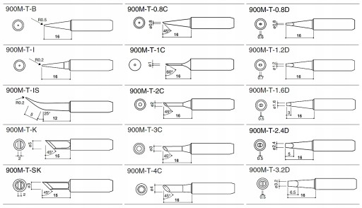 W skład zestawu wchodzą 3 dodatkowe groty do lutowania:
