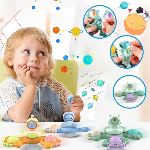Bączek aktywowany palcem Zabawki edukacyjne z uroczym projektem astronauty | Zabawka Spinner z przyssawką