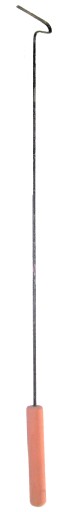 Pogrzebacz do pieca kominka o długości 0,83 m z drewnianą rączką.