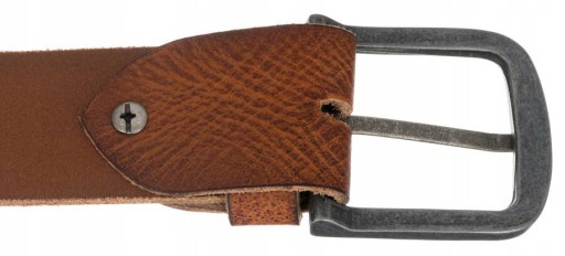 - Prawdziwie męski design|Pasek w klasyczny, brązowym kolorze. Zakończony jest srebrną klamrą, celowo zmatowioną, tak aby pasowała to surowej stylistyki, jaką się cechuje;