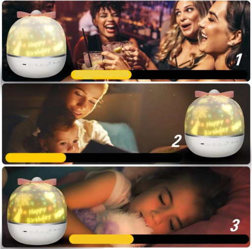 6️⃣6 opcjonalnych trybów scen: Projektor oświetlenia nocnego dla dzieci wyświetla różne sceny, takie jak wszystkiego najlepszego z okazji urodzin, dziecięcy koń trojański, Święty Mikołaj, morski park dinozaurów, rakieta latający spodek i park zwierząt. Można wybrać różne filmy projekcyjne dla różnych scen. Pomóż dzieciom pobudzić ciekawość, wyobraźnię i kreatywność.