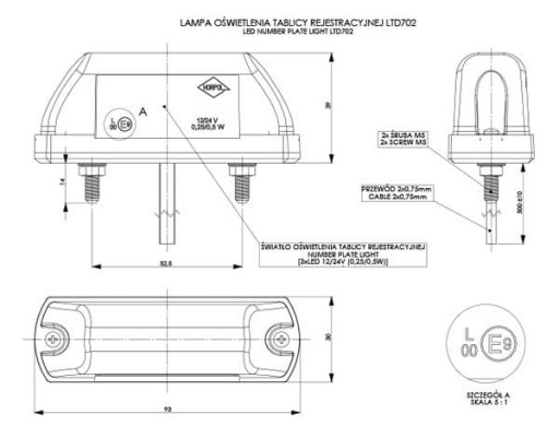 - ▶️ Ilość LED: 3, co oferuje optymalną jasność dla oświetlenia tablicy rejestracyjnej.