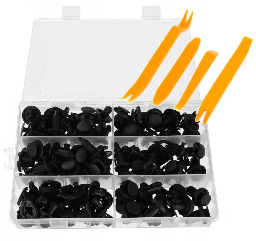 Uniwersalny zestaw kołków samochodowych do mocowania tapicerki, elementów plastikowych, zderzaków, uszczelek itp.