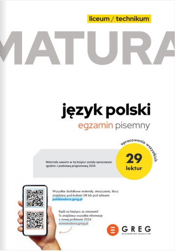 Prezentujemy repetytorium maturalne do języka polskiego, które pozwoli przygotować się do pisemnej części egzaminu. Publikacja od Wydawnictwa GREG powstała z myślą o uczniach, którzy zdają maturę w 2026 roku. Cały zawarty w niej materiał jest zgodny z aktualnymi wymaganiami przedmiotowymi.