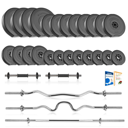 W skład zestawu SOLID 115 wchodzi aż 24 talerze, gryf prosty, gryf łamany (do wyboru dwie wersje) i dwa gryfy do hantli - z takim wyposażeniem możesz przeprowadzać trening wszystkich grup mięśniowych!