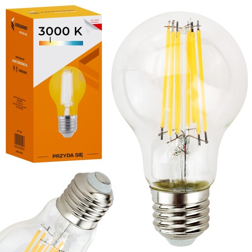 Żarówka posiada światło LED typu filament, co oznacza, że ta żarówka wykorzystuje technologię LED z elementami o strukturze przypominającej tradycyjne włókna żarówki. Daje to efekt estetyczny przypominający tradycyjne żarówki, ale z większą energooszczędnością. Przezroczysta obudowa żarówki dodaje jej estetyki i sprawia, że może być atrakcyjnym elementem dekoracyjnym, szczególnie w lampach o otwartych kloszach.