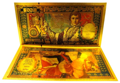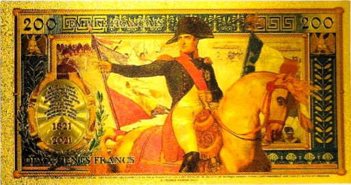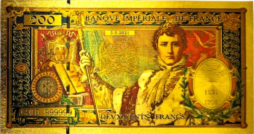 Piękny pozłacany banknot z wizerunkiem NAPOLEONA BONAPARTE.