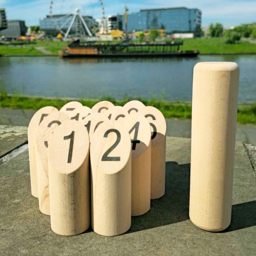 - Kręgle, zbijak wykonaliśmy z nielakierowanego drewna bukowego, a numery i logo są trwale wypalone.