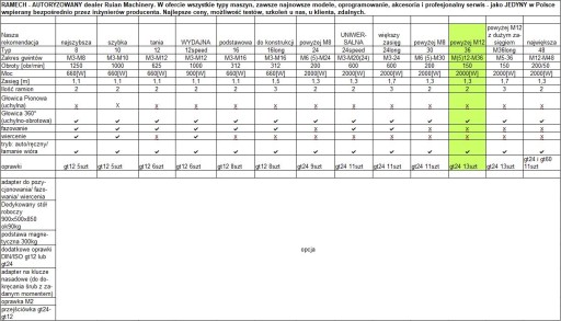 Szczegóły w tabeli poniżej. Dobierz właściwą maszynę do swoich potrzeb: