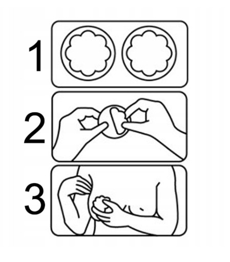 3. Przyklej nakładki na sutki rozpoczynając od dolnej części piersi