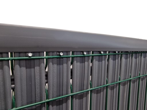 Maskownicę zakładamy na górną część ogrodzenia tak, aby zasłoniła kołki oraz drut panela ogrodzeniowego.