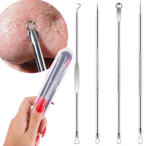 - ✅4 dwustronne łyżeczki do bezpiecznego usuwania zaskórników, wągrów i pryszczy