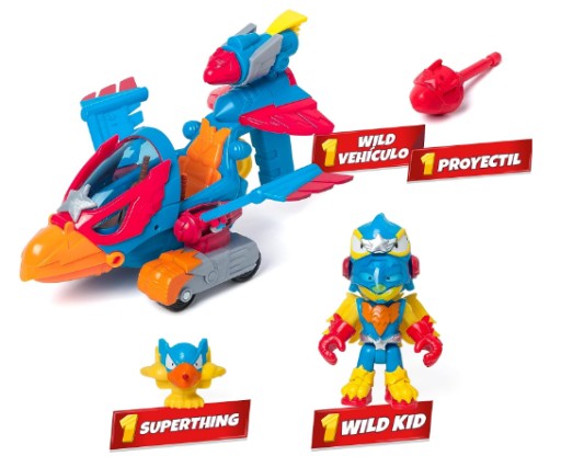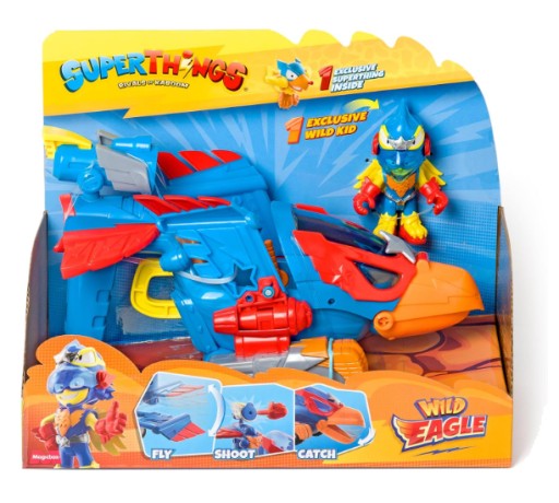 Walcz na ziemi lub w powietrzu za pomocą pojazdu Wild Eagle z przeciwnikiem Wild Scorpion! Dzięki potężnym zwierzęcym atakom i wykwalifikowanym pilotom rozpoczyna się najdzikszy pojedynek! Odkryj pełną moc orła, z ekskluzywnym Wild Kidem i SuperThingiem, których miejsce jest w kokpicie. W czasie ruchu skrzydła pojazdu poruszają się w górę i w dół. Pociągnij za spust, aby schwytać Złoczyńców dziobem lub trafić w nich pociskiem!