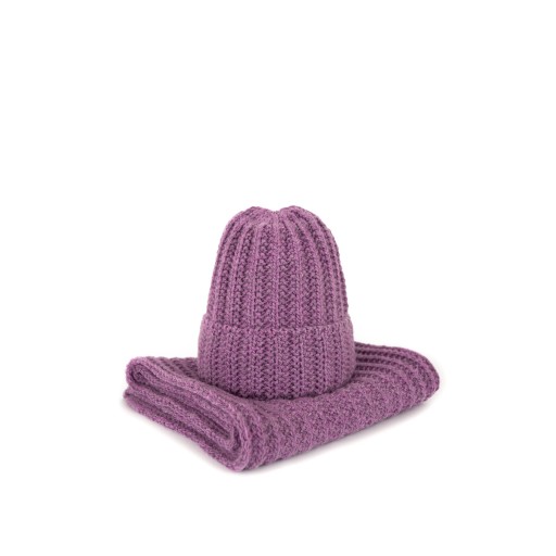 Wyjątkowy, ciepły komplet składający się z wywijanej czapki i szala.