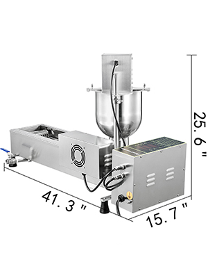 Materiał ze stali nierdzewnejKomercyjna maszyna do robienia pączków jest wykonana z pełnego materiału ze stali nierdzewnej 304 o jakości spożywczej, wytrzymałego i trwałego. Odporna na korozję, rdzę i łatwo się czyści.Inteligentna kontrolaWyposażony w jeden inteligentny panel sterowania do wygodnej i precyzyjnej kontroli temperatury oleju i czasu smażenia. Ze wskaźnikami pokazującymi status.Zasobnik o dużej pojemnościAutomatyczna mini maszyna do robienia pączków jest wyposażona w lejek o dużej pojemności na 7 litrów ciasta. Można zrobić wiele pączków jednocześnie, bez konieczności wielokrotnego ładowania zasobnika.