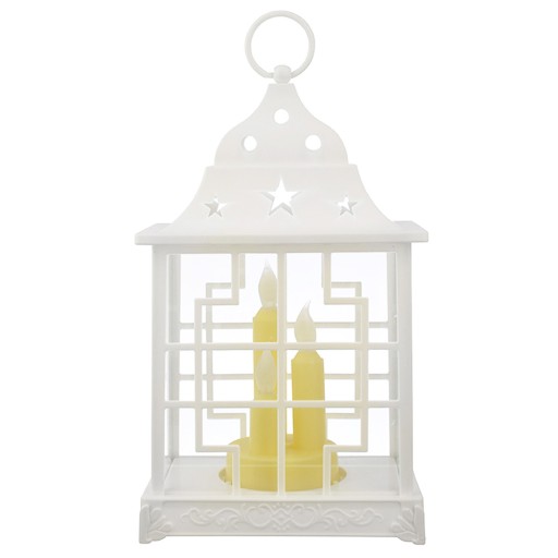 Plastikowa latarnia z wbudowaną potrójną świeczką LED. Migające knoty imitują prawdziwy płomień za pomocą diody o ciepłej barwie światła. Polecana na roraty oraz dekoracje okien i nagrobków.