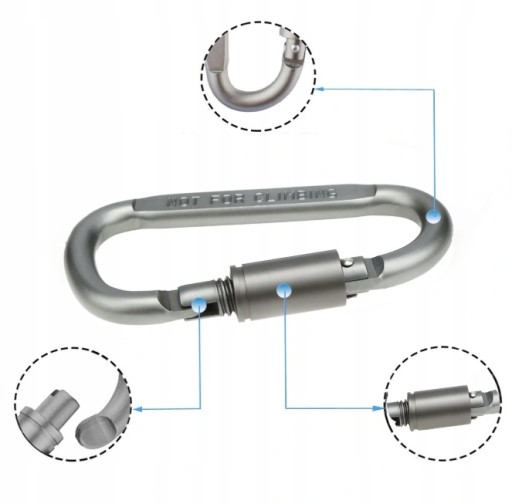 - Karabinek jest dodatkowa zakręcany co stanowi dodatkowe zabezpieczenie przed rozpięciem.