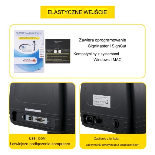 Ploterowa maszyna do cięcia winylu ma wysoką kompatybilność i elastyczne wejście, które można podłączyć za pomocą trzech dostępnych portów, COM, USB i U-Disk. Jest kompatybilny z wieloma systemami komputerowymi, takimi jak Windows XP/VISTA/7/8/10 (32 i 64).