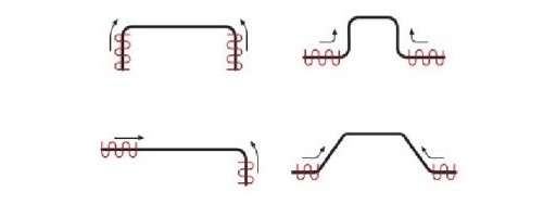 System szyn aluminiowych MS można giąć punktowo pod kątem prostym lub innym zgodnie z wymaganiami użytkownika, odwzorowując w ten sposób kształt okien lub ścian. Istnieje możliwość gięcia wewnętrznego jak i zewnętrznego zgodnie z poniższymi schematami .