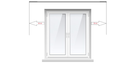 Montaż nad oknem - należy zmierzyć wnękę okienną i do tego rozmiaru dodać około 50 cm, dzięki czemu tkanina która zostanie zamocowana na szynie zakryje całą wnękę okienną.
