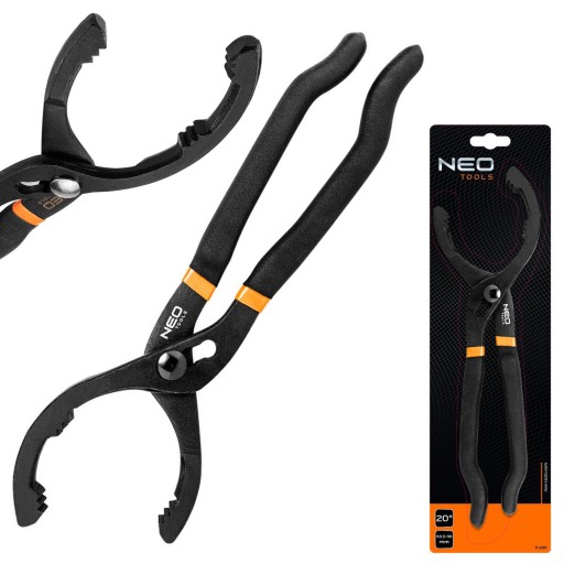 Klucz odgięty szczypcowy (20°) do filtrów oleju 63.5 - 116 mm 11-240, NEO TOOLS do profesjonalnych warsztatów i serwisów samochodowych oraz dla zaawansowanych amatorów. Klucz przeznaczony do sprawnego i prawidłowego montowania zewnętrznych filtrów olejowych z metalową obudową. Przeznaczony dla filtrów o średnicy od 63.5 do 116 mm