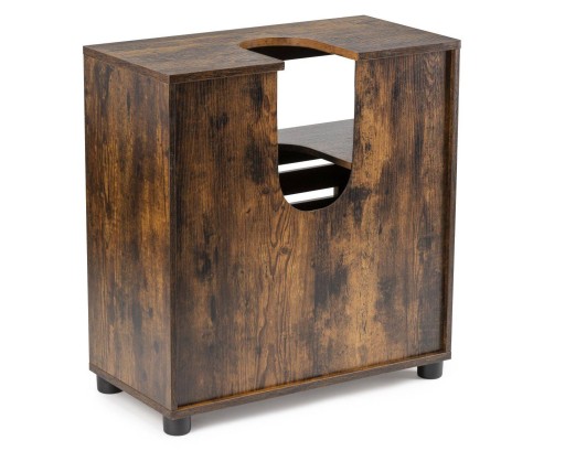 Rustykalna szafka łazienkowa dedykowana pod umywalkę to doskonałe rozwiązanie, które pomoże przykryć nieestetyczny rury i jednocześnie zyskać dodatkowe miejsce do przechowywania. Wszystkie przybory i akcesoria łazienkowe, zwłaszcza te, których nie chcemy trzymać na widoku, są chronione przed wodą i kurzem. Szafka podzielona jest na dwie części za pomocą poziomej półki, którą można umieścić na trzech różnych wysokościach, dzięki czemu możemy przechować w szafce przedmioty różnej wielkości. Szafka nie tylko wprowadzi ład i porządek w Twojej łazience, ale dodatkowo nada jej eleganckiego stylu, która będzie zachwycać każdego dnia.