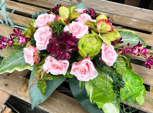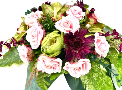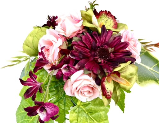 W skład wiązanki i bukietu wchodzi zestaw sztucznych kwiatów: