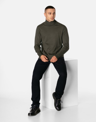 Cienki sweterek męski golf typu "High-Neck" z najnowszej kolekcji firmy VERTIGO PREMIUM to ikona klasycznego męskiego stylu łącząca w sobie walory estetyczne z funkcjonalnością. Wkładany przez głowę, dół swetra i mankiety wykonane ze sprężystej dzianiny ściągaczowej. Wyprodukowany z wysokogatunkowej dzianiny swetrowej o drobnym splocie zapewniającej wysoki komfort noszenia i swobodę ruchów. Dzięki dużej zawartości bawełny sweterek jest przewiewny, przyjazny dla alergików i łatwy do utrzymania w czystości. Niewielki dodatek nylonu zapewnia pełną swobodę ruchów, wygodę noszenia oraz stabilność rozmiarów i koloru po wielokrotnym praniu. Model wygodny i uniwersalny, doskonale sprawdzi się zarówno w formalnych jak i mniej formalnych stylizacjach. Dzięki swojej prostocie bardzo elegancki. Doskonale wygląda zarówno z jeansami, sztruksami, chinosami jak i spodniami materiałowymi a zastąpienie cienkim sweterkiem koszuli pod marynarką w obecnym sezonie to jedno z najmodniejszych połączeń.